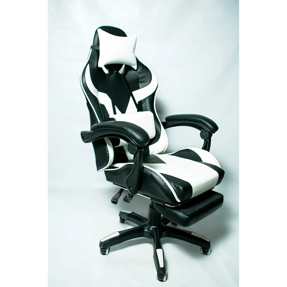 Крісло геймера FLINT footrest, чорний/білий АКЦІЯ!