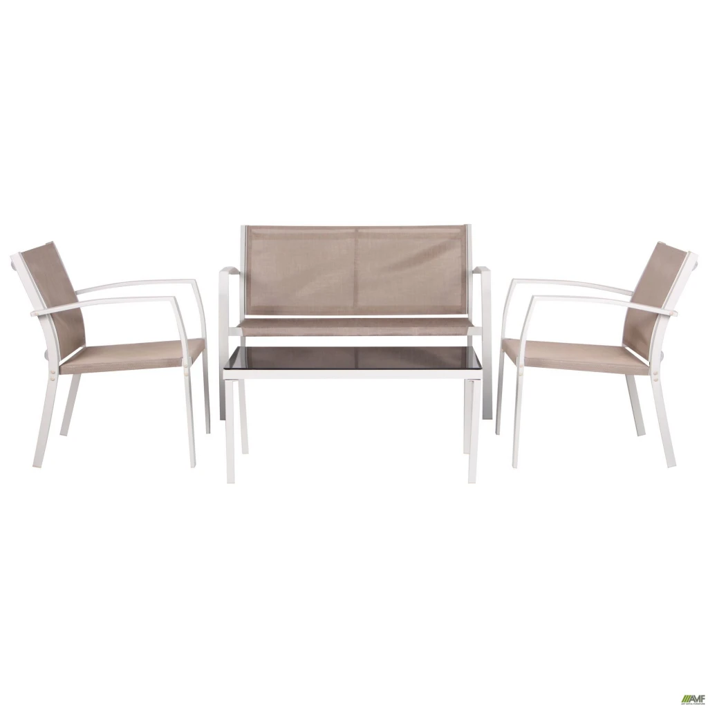 Комплект Camaron - прекрасное решение для летнего отдыха. Включающий в себя двухместную софу, два кресла и кофейный столик, этот набор поможет вам обустроить уютное и удобное место для отдыха на открытом воздухе. Этот комплект создает атмосферу уюта и релаксации, а также идеально подходит для использования на веранде, террасе кафе или в саду. Разместившись с гостями, вы сможете наслаждаться чашечкой кофе или чаем на свежем воздухе, наслаждаясь этим моментом. Материалы Каркас изделий стальной, покрытый порошковой краской. Столешница стола выполнена из каленого стекла толщиной 5 мм. Сиденье, спинка выполены из текстилен. Габариты Диван - Ш110хГ61хВ75 см. Сиденье - Ш97хГ45 см. Высота от пола до сиденья - 38 см, высота спинки - 41 см, высота подлокотника от сиденья - 24 см. Кресло - Ш75хГ61хВ75 см. Сиденье - Ш45хГ45 см. Высота от пола до сиденья - 38 см, высота спинки - 41 см, высота подлокотника от сиденья - 24 см. Стол - Ш85хГ45хВ38 см.