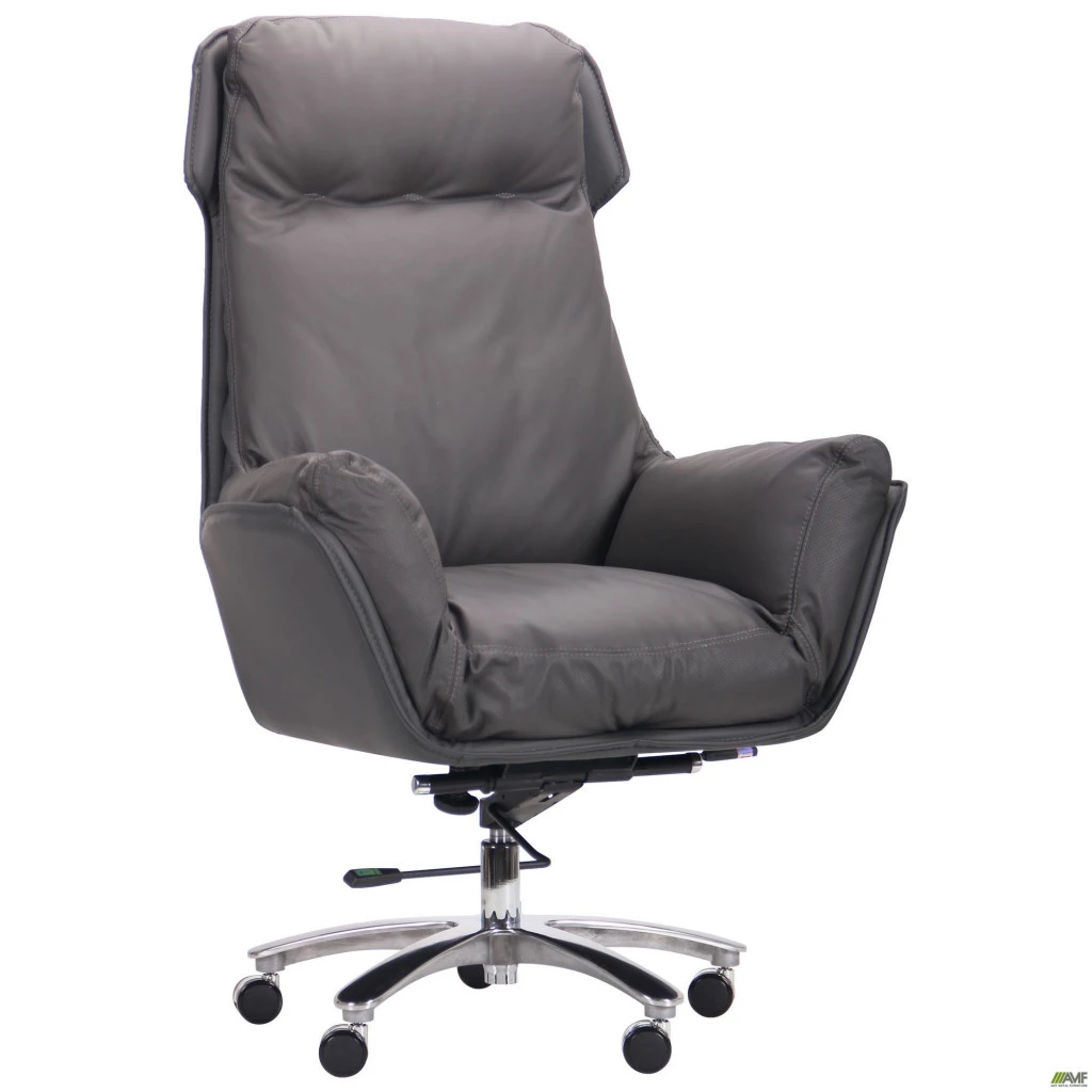 Презентабельное кресло AMF Wilson станет отличным выбором для кабинета руководителя. Оно выполнено в сдержанном стиле, что позволяет легко занять свое место в любом интерьере. Благодаря широкой спинке и мягким подлокотникам время, проведенное за работой, будет комфортным. Мягкие сиденье и спинка в виде подушки, позволяют принять максимально удобное положение. Для обивки используется натуральная кожа для передней части и подлокотников, кожзаменитель для внешних деталей кресла. Оба материала износостойкие и долговечные. Сиденье наполнено латексом, а спинка и подлокотники комбинацией пуха и пера. Основание выполнено в виде пятилучевой крестовины с роликами для простоты перемещения кресла. Для изготовления используется хромированный алюминий. Такое основание обеспечивает хорошую устойчивость.