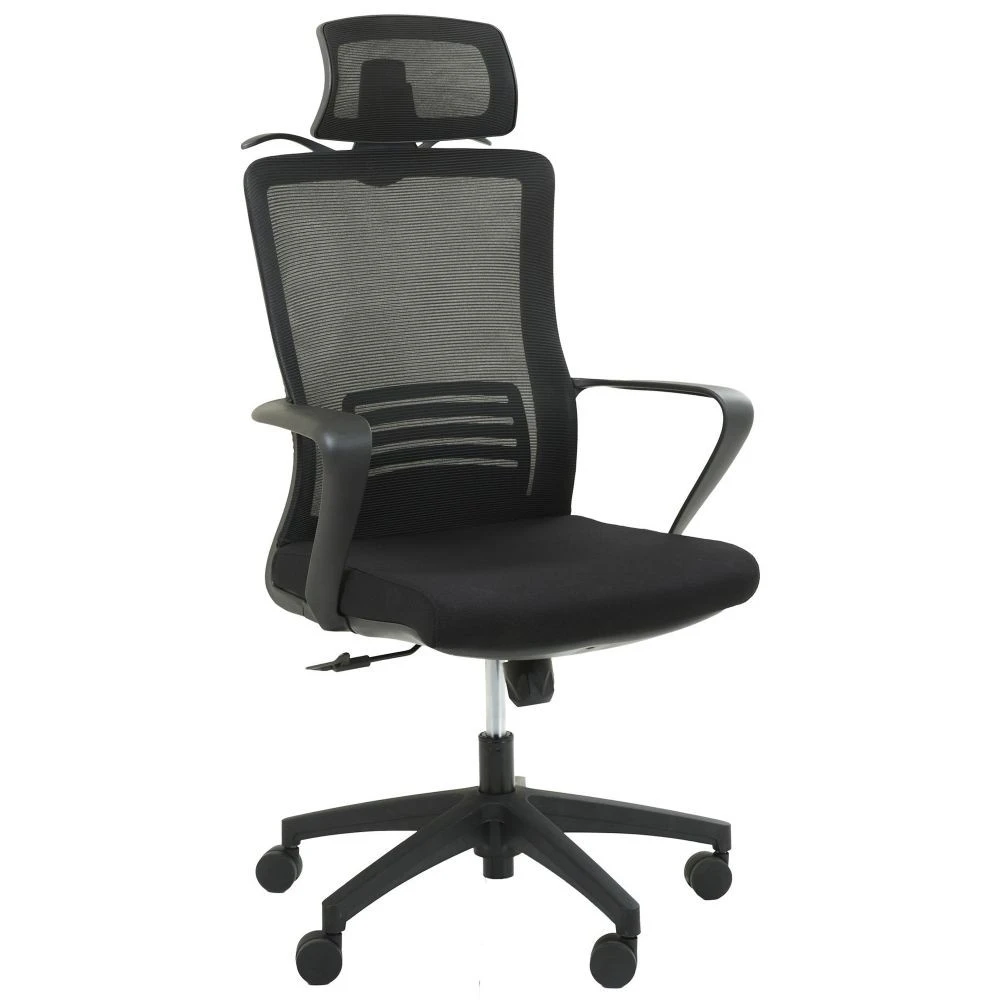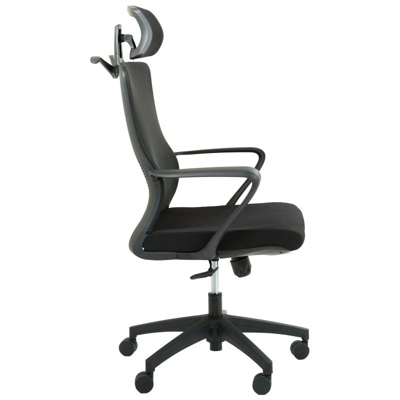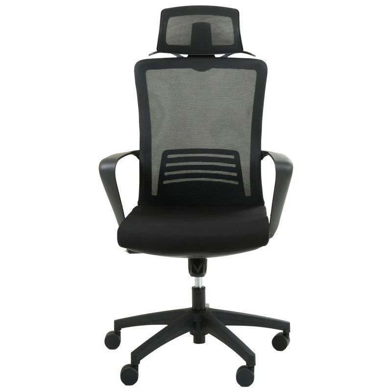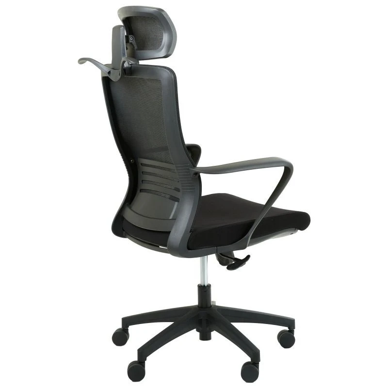 Кресло с дышащей спинкой. Оно имеет черный каркас из высококачественного пластика. Прорезиненные ролики позволяют плавно и бесшумно перемещаться. Кресло также оснащено регулируемым поясничным подпором и подголовником, позволяющие настроить его под удобство пользователя, а также разрядить нагрузку со спины и шеи во время длительного рабочего дня. Обивка из сетки обеспечивает эффективную циркуляцию воздуха.