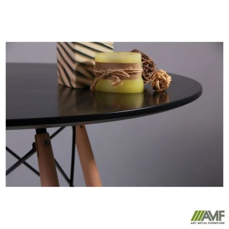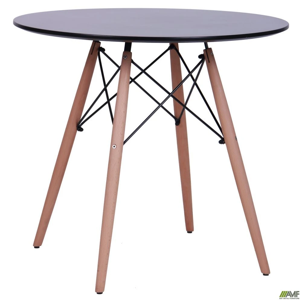 Обеденный стол Helis, разработанный Чарльзом и Рэй Эймс, является образцом простоты и лаконичности. Благодаря идеальным пропорциям этот предмет мебели легко впишется в любой интерьер. Столешница, выполненная из МДФ ламинирована пластиком, стойким к влаге и механическому воздействию. Круглая форма и небольшая толщина крышки стола позволяет ему компактно размещаться даже в небольшом помещении. Четыре тонкие прямые ножки, выполненные из дерева, расположены под небольшим наклоном, что придает конструкции дополнительную устойчивость. Они крепятся при помощи стальной черной фурнитуры, имеющей безопасные заглушки на концах, того же цвета.