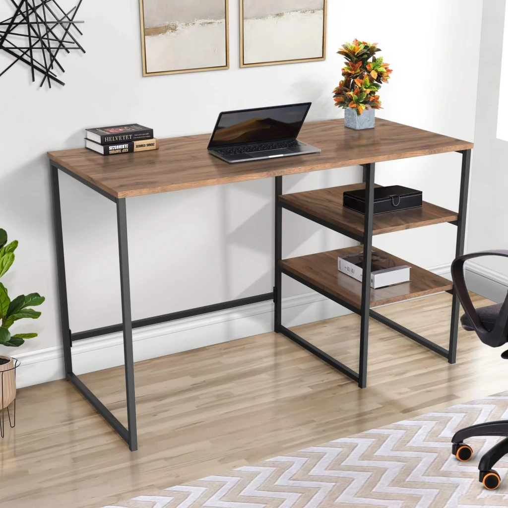 Компьютерный стол с полками J120 - выполненный в популярном стиле лофт, прекрасно впишется в любой современный интерьер. Стол имеет металлический каркас, обеспечивающий прочность и долговечность, а его боковые полки предоставляют дополнительное место для хранения. Компактные размеры (1187х550х750 мм) делают его идеальным для небольших помещений.