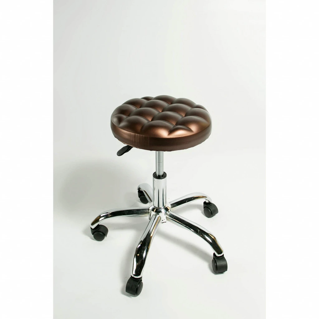 Кресло табурет на колесиках для мастера с регулировкой высоты. Стул выполнен из мягким сидением с хромированным металлическим каркасом. Колесики выполнены из пластика с мягким ходом. Высота стула регулируется.