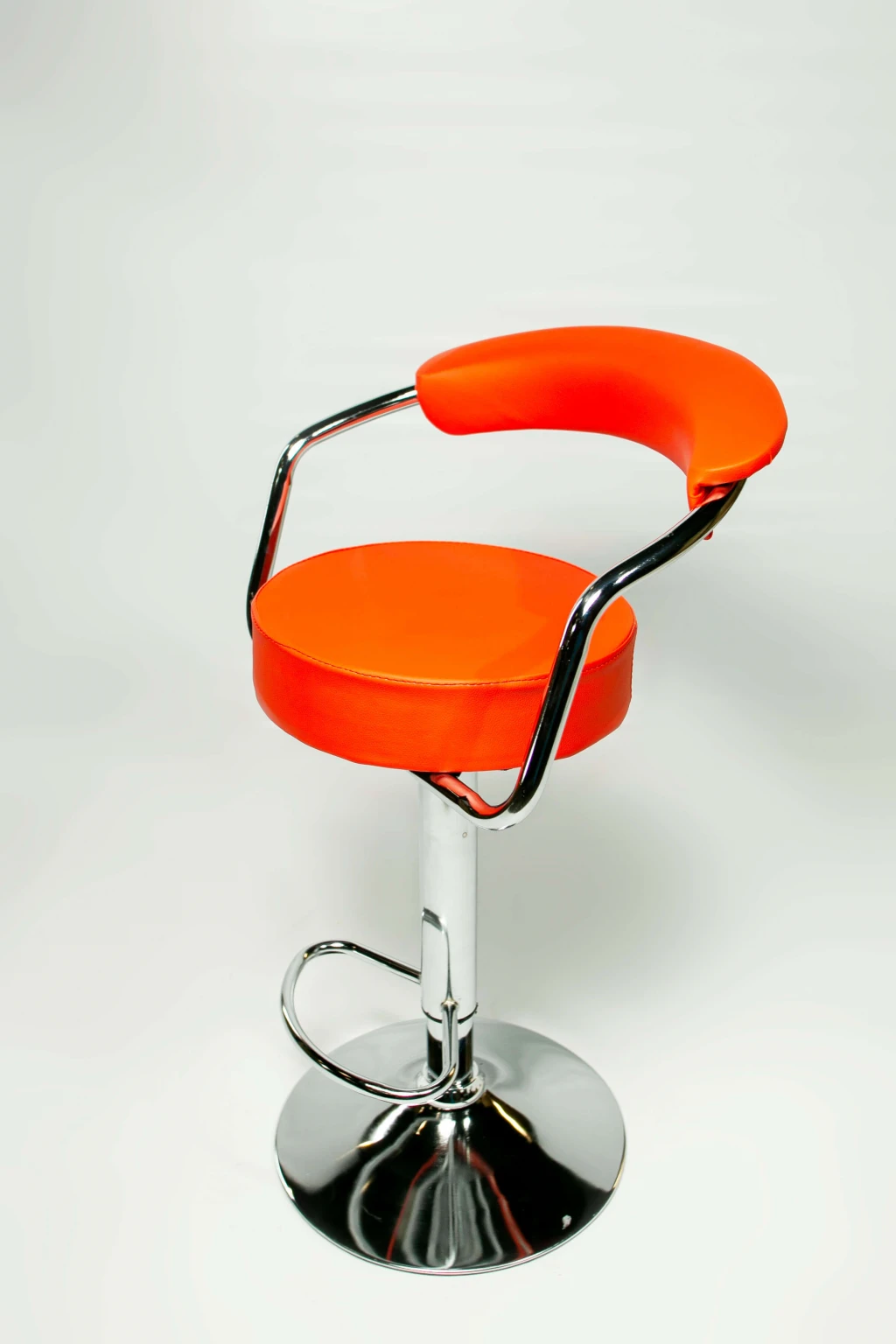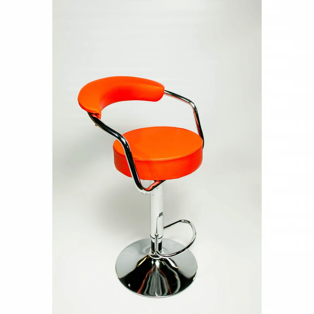 Барний стілець високої якості на хромованій базі, з жорстким сидінням і спинкою. Ідеально підходить для кухні, їдальні або бару. Стілець регулюється по висоті, має зручну підніжку. Максимальне навантаження на стілець розраховане до 120 кг. Максимальна висота 110 см.