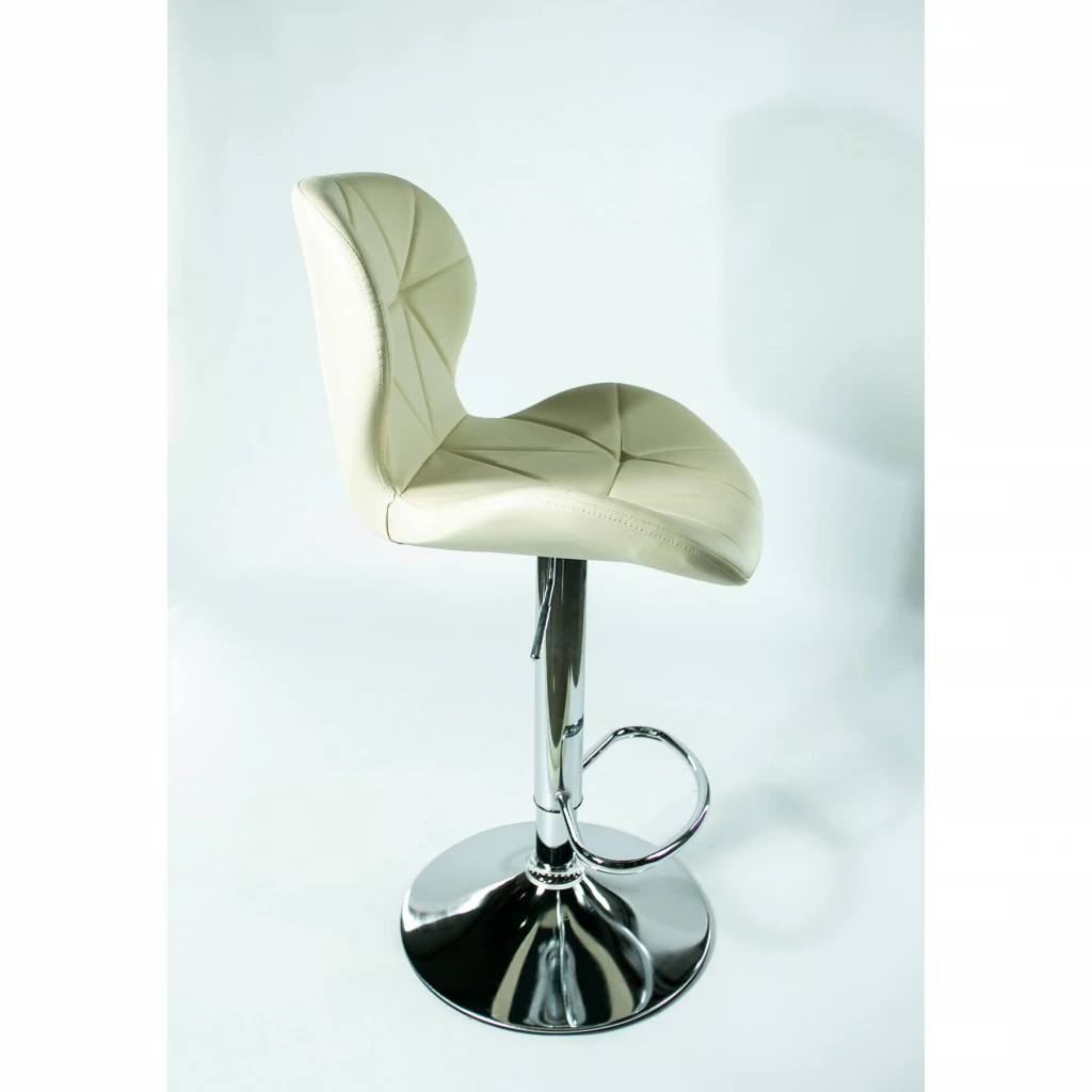 Барний стілець високої якості на хромованій базі, з м'яким сидінням і спинкою. Ідеально підходить для кухні, їдальні або бару. Стілець регулюється по висоті, має зручну підніжку. Максимальне навантаження на стілець розраховане до 120 кг. Максимальна висота 112 см.