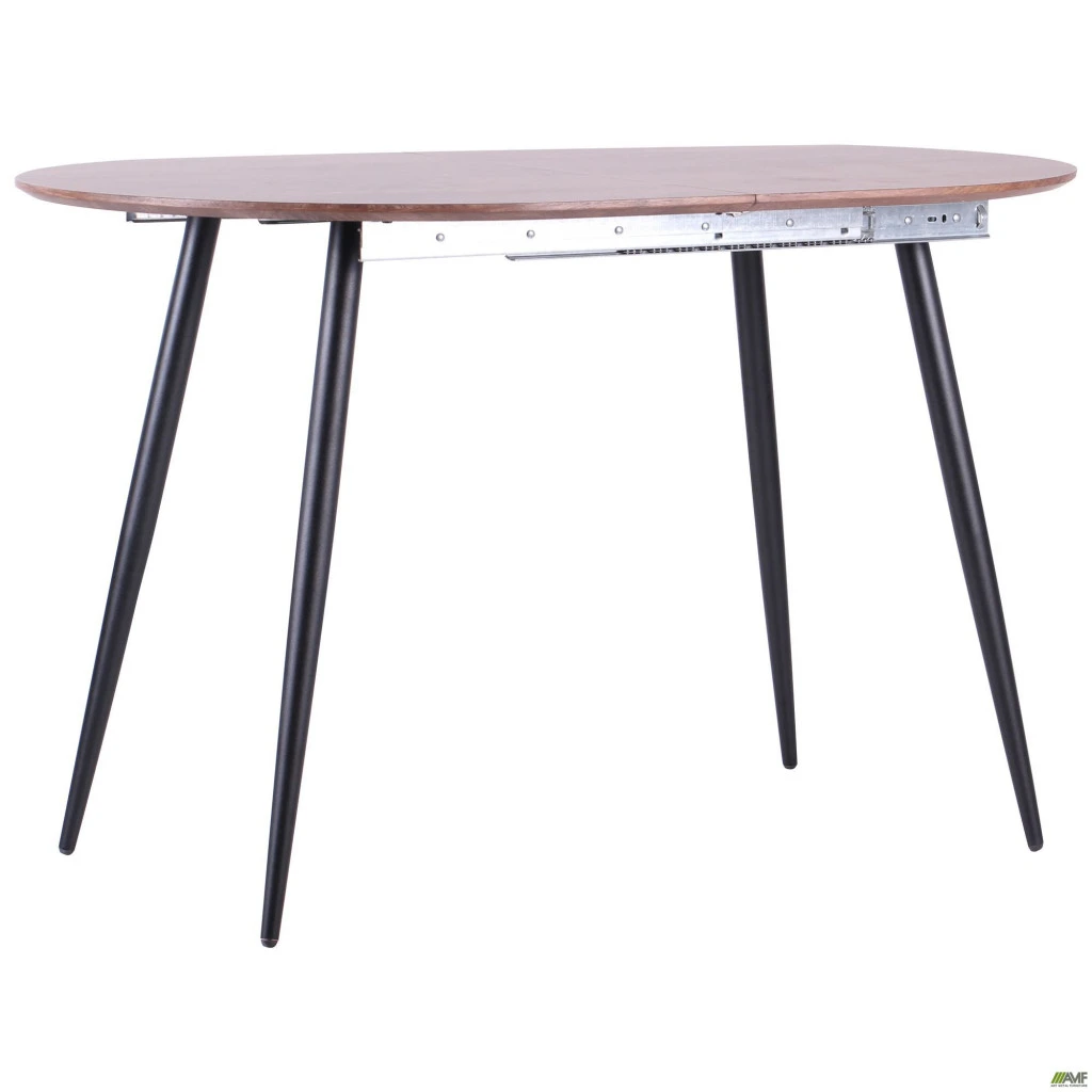 Обідній стіл AMF Nevada - сучасний стіл овальної форми з механізмом розкладання. Ніжки виконані з високоякісної сталевої труби і мають конусоподібну форму, покриті порошковою фарбою. Стільниця виготовлена з плити МДФ, товщиною 18 мм з покриттям зі штучного шпону з ефектом 3D. Розкладний механізм складається з металевих полозів і спеціальної окремої вставки. Пластикові заглушки внизу ніжок забезпечують захист вашого підлогового покриття від подряпин і пошкоджень. Обідній стіл AMF Nevada - це незвичайний сучасний варіант, який прослужить вам довгий час і буде невід'ємною частиною вашого інтер'єру.