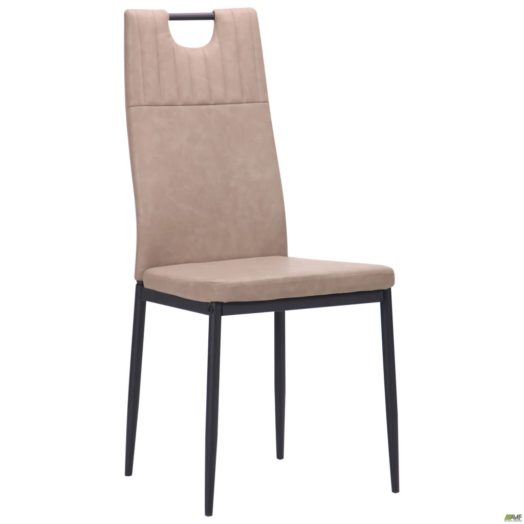 Стілець обідній AMF Alabama стане відмінною прикрасою самого вишуканого інтер'єру в їдальні або кухні. Розбірна конструкція виконана з металевої редукованої труби. Для стійкості ніжки зведені на конус і захищені пластиковими заглушками. Використаний метал покритий чорною порошковою фарбою. Крісло виконане в двох кольорах: бетон і капучино. Шкірозамінник Wax PU має тривалий термін служби, стійкий до вологи, добре переносить перепади температур і можливі механічні дії. На спинці моделі обладнана зручна ручка, яка дозволяє легко переміщати або переносити крісло. Декоративна строчка робить модель красивою і витонченою. Компактні розміри і вага виробу 4,5 кг додають кріслу практичності і функціональності. Виріб здатний витримати навантаження до 120 кг.