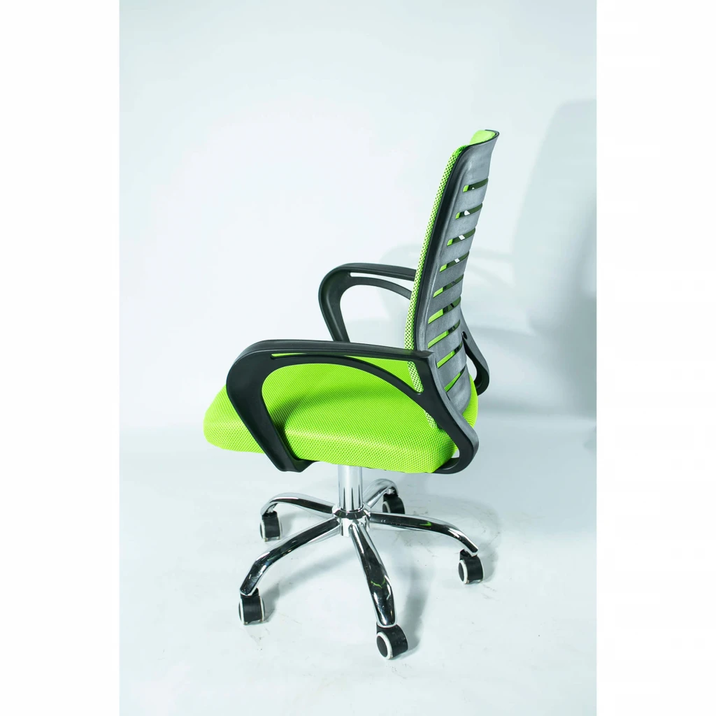 Зручне, просте компактне крісло для роботи на комп'ютері. Спинка оббита тканиною – сіткою, 100% склад – поліестер. Міцний матеріал не боїться механічного впливу та довговічний. Крісло оснащене зручним механізмом, що дозволяє регулювати висоту крісла.