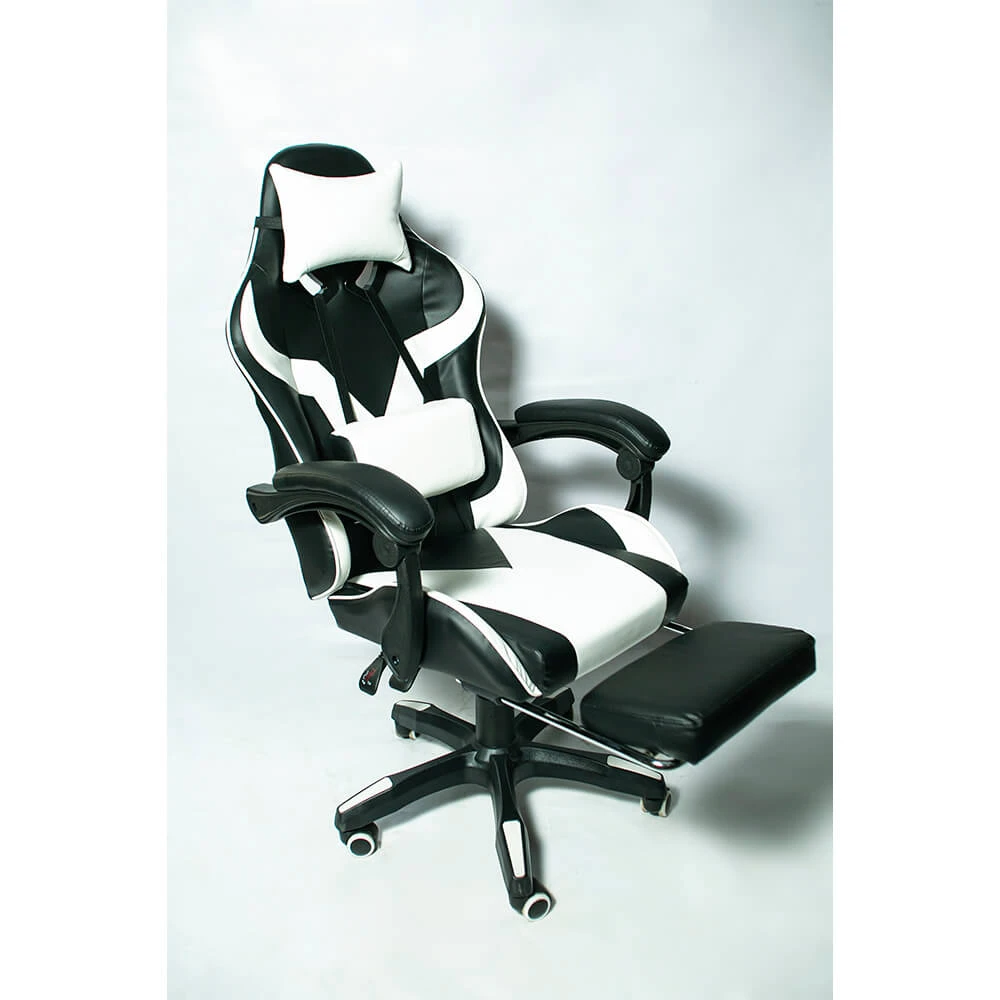 Крісло геймера FLINT footrest, чорний/білий АКЦІЯ!