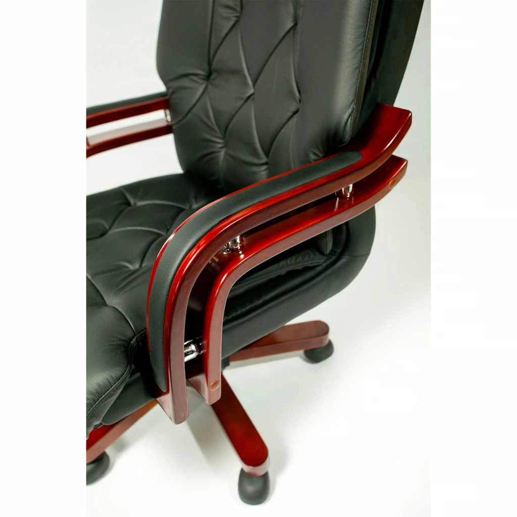 Модель оснащена підлокітниками та хрестовиною з натурального дерева.