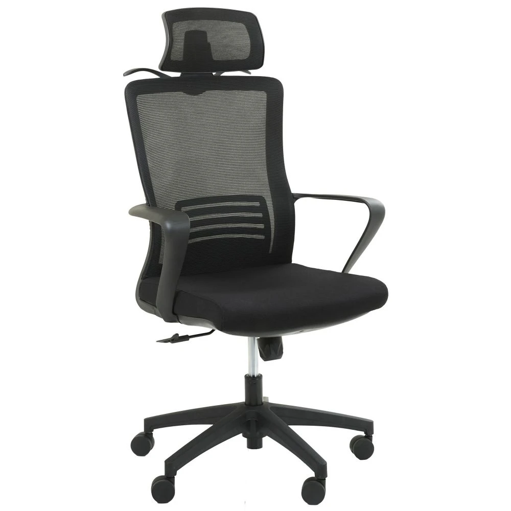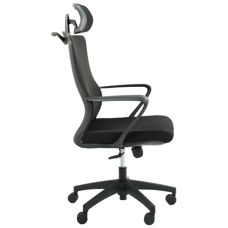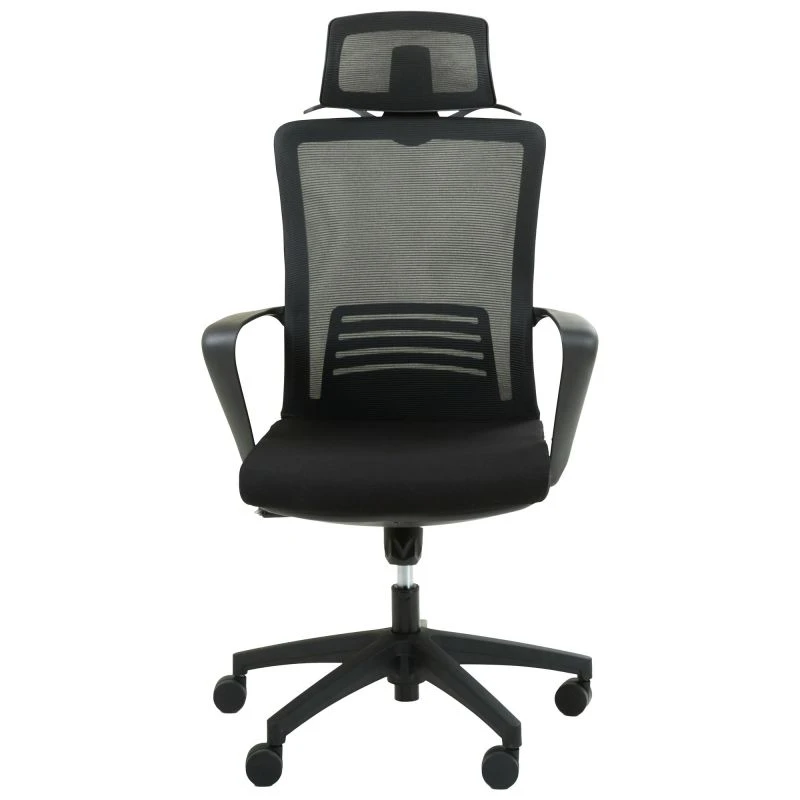 Крісло з дихаючою спинкою. Воно має чорний каркас з високоякісного пластику. Прогумовані ролики дозволяють плавно і безшумно переміщатися. Крісло також оснащене регульованим поперековим підпіром і підголівником, що дозволяють налаштувати його під зручність користувача, а також розрядити навантаження зі спини та шиї під час тривалого робочого дня. Оббивка з сітки забезпечує ефективну циркуляцію повітря.