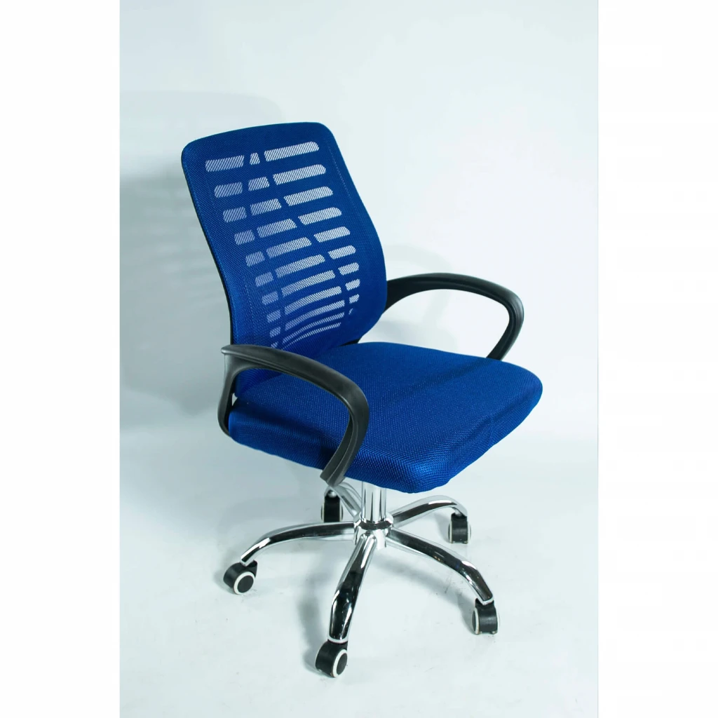 Супер ергономічне крісло з невисокою спинкою. Оббивка - повітропроникна нейлонова сітка, міцна та комфортна. Зручні оригінальні підлокітники виконані із міцного пластику.