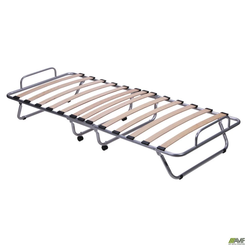 На ножках раскладушки присутствуют ролики для удобства перемещения.
