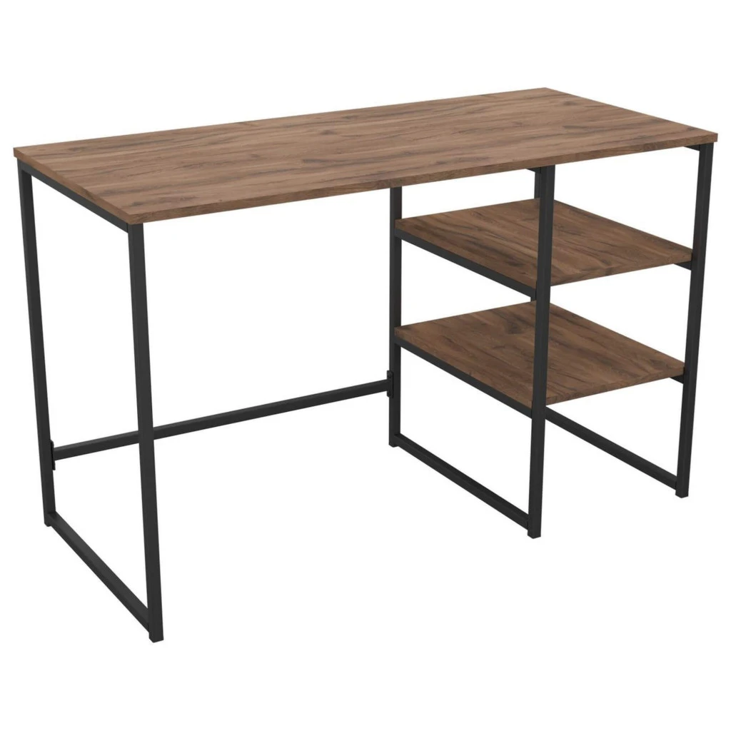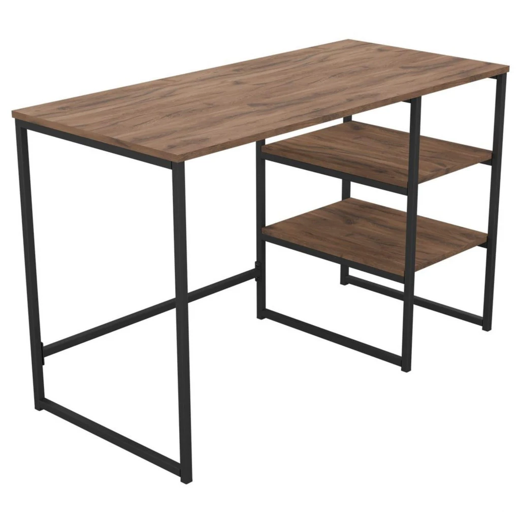 Компьютерный стол с полками J120 - выполненный в популярном стиле лофт, прекрасно впишется в любой современный интерьер. Стол имеет металлический каркас, обеспечивающий прочность и долговечность, а его боковые полки предоставляют дополнительное место для хранения. Компактные размеры (1187х550х750 мм) делают его идеальным для небольших помещений.