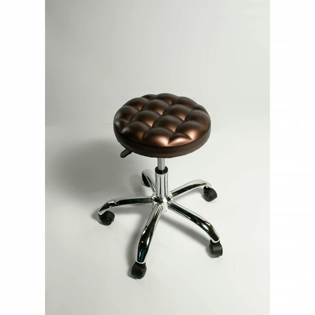 Кресло табурет на колесиках для мастера с регулировкой высоты. Стул выполнен из мягким сидением с хромированным металлическим каркасом. Колесики выполнены из пластика с мягким ходом. Высота стула регулируется.
