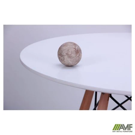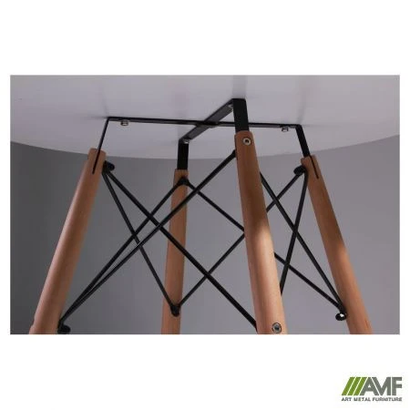 Обідній стіл Helis, розроблений Чарльзом і Рей Еймс, є зразком простоти і лаконічності. Завдяки ідеальних пропорцій цей предмет меблів легко впишеться в будь-який інтер'єр. Стільниця, виконана з МДФ ламінована пластиком, стійким до вологи і механічного впливу. Кругла форма і невелика товщина кришки столу дозволяє йому компактно розміщуватися навіть в невеликому приміщенні. Чотири тонкі прямі ніжки, виконані з дерева, розташовані під невеликим нахилом, що надає конструкції додаткову стійкість. Вони кріпляться за допомогою сталевої чорної фурнітури, що має безпечні заглушки на кінцях, того ж кольору.